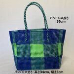 ペットボトルなどの使用されたPETをリサイクル。ポリエチレン製のカラフルなコードを使って手編みをしたバスケットバッグです。