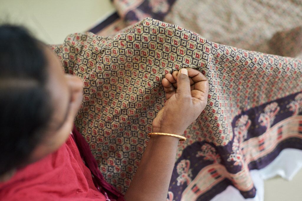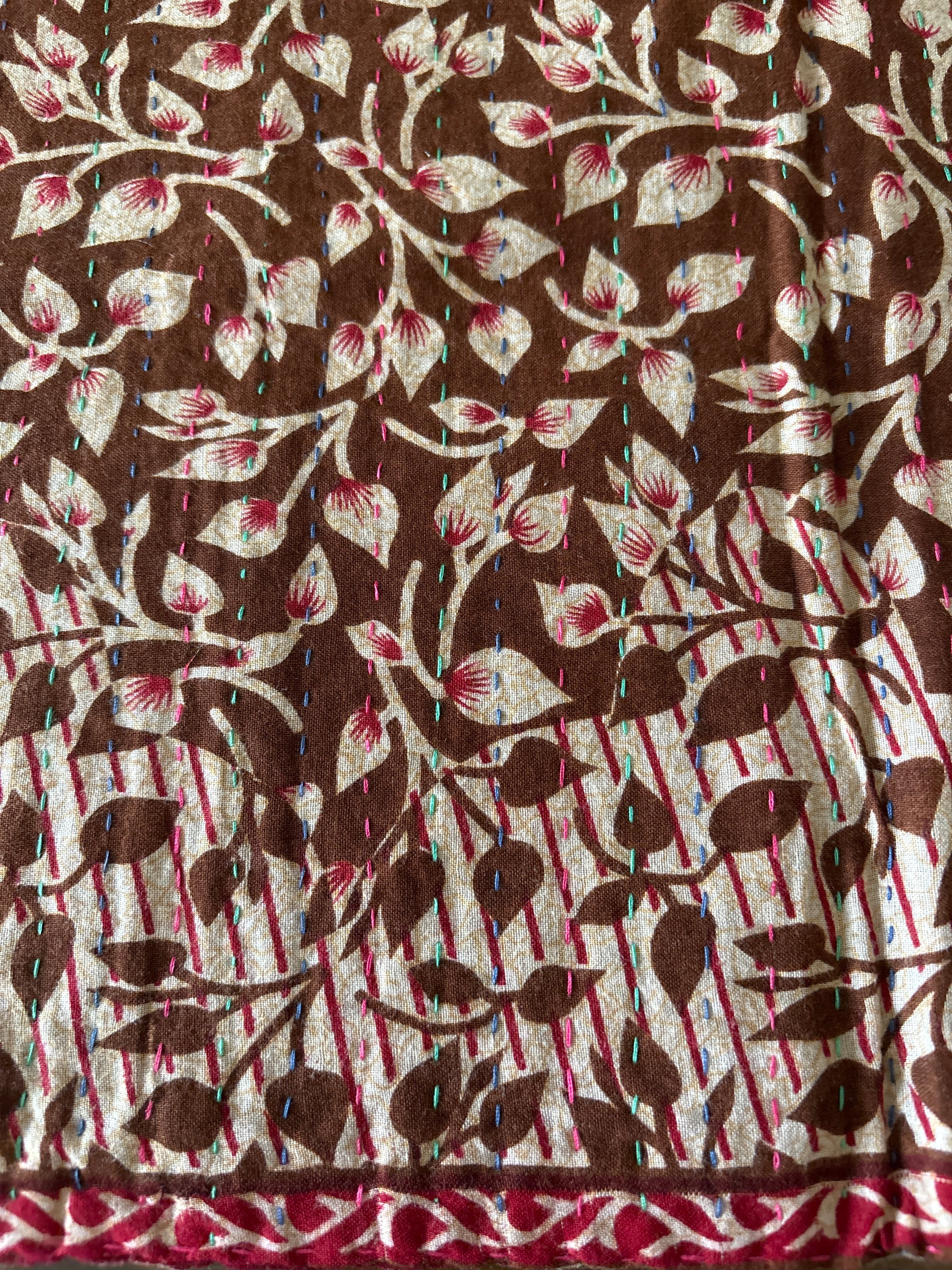 コットンのサリーの古布を重ねて刺し子を施し再生したものを現地では”Kantha”と言います。古いものを手を加えることで再生し、新たに命を吹き込んだKanthaは、同じものが世界に2つとない、エコでさらにユニークなお品です。