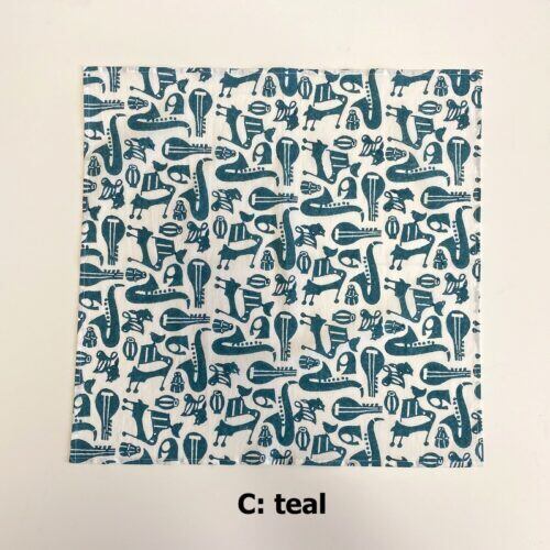 西インドのジャープールで古くから伝わるウッドブロックプリントの技法を用いた、楽器モチーフのバンダナです。