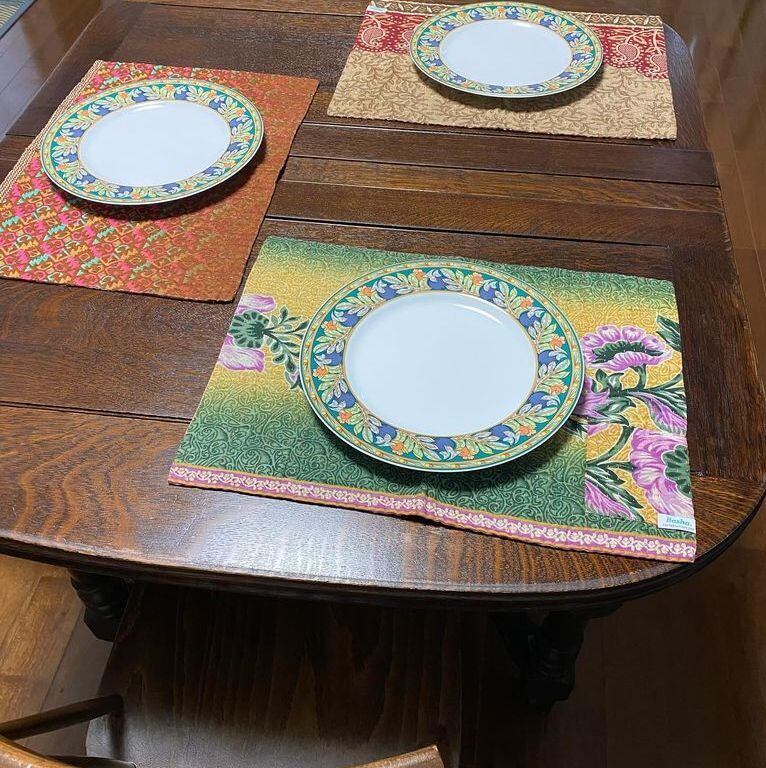 リサイクルサリー・リバーシブルマット(茶赤)【フェアトレード】 | Yellow Bridge